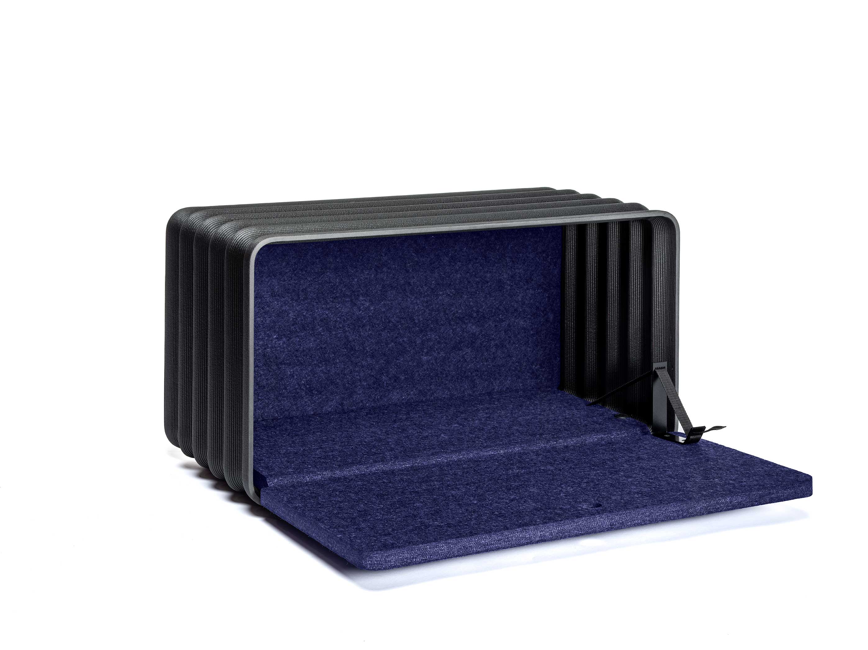 Gefertigt aus recycelten Karbonfasern aus der Automobilindustrie und alten Windrädern, kombiniert mit Filz aus recyceltem PET-G.