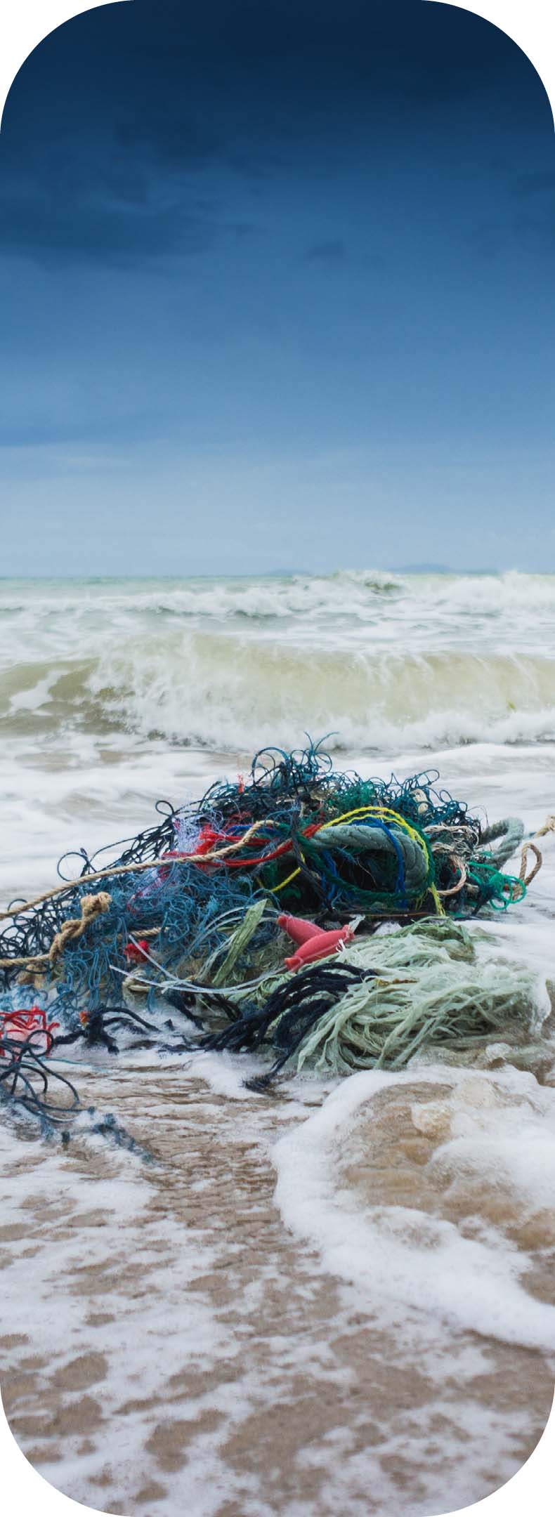 Discarded fishing nets are collected, sorted, and turned into sturdy plastic granulate that can be reused for durable components.