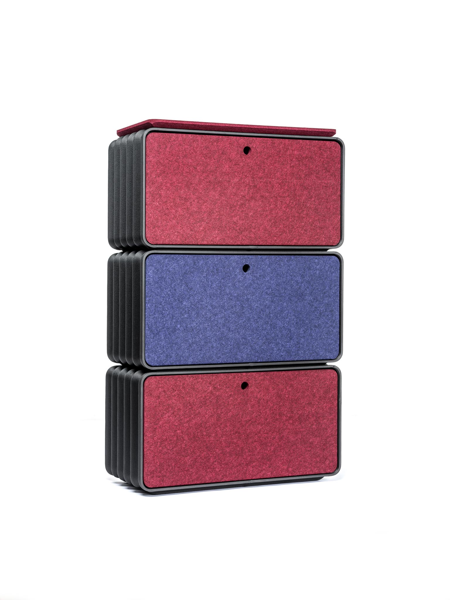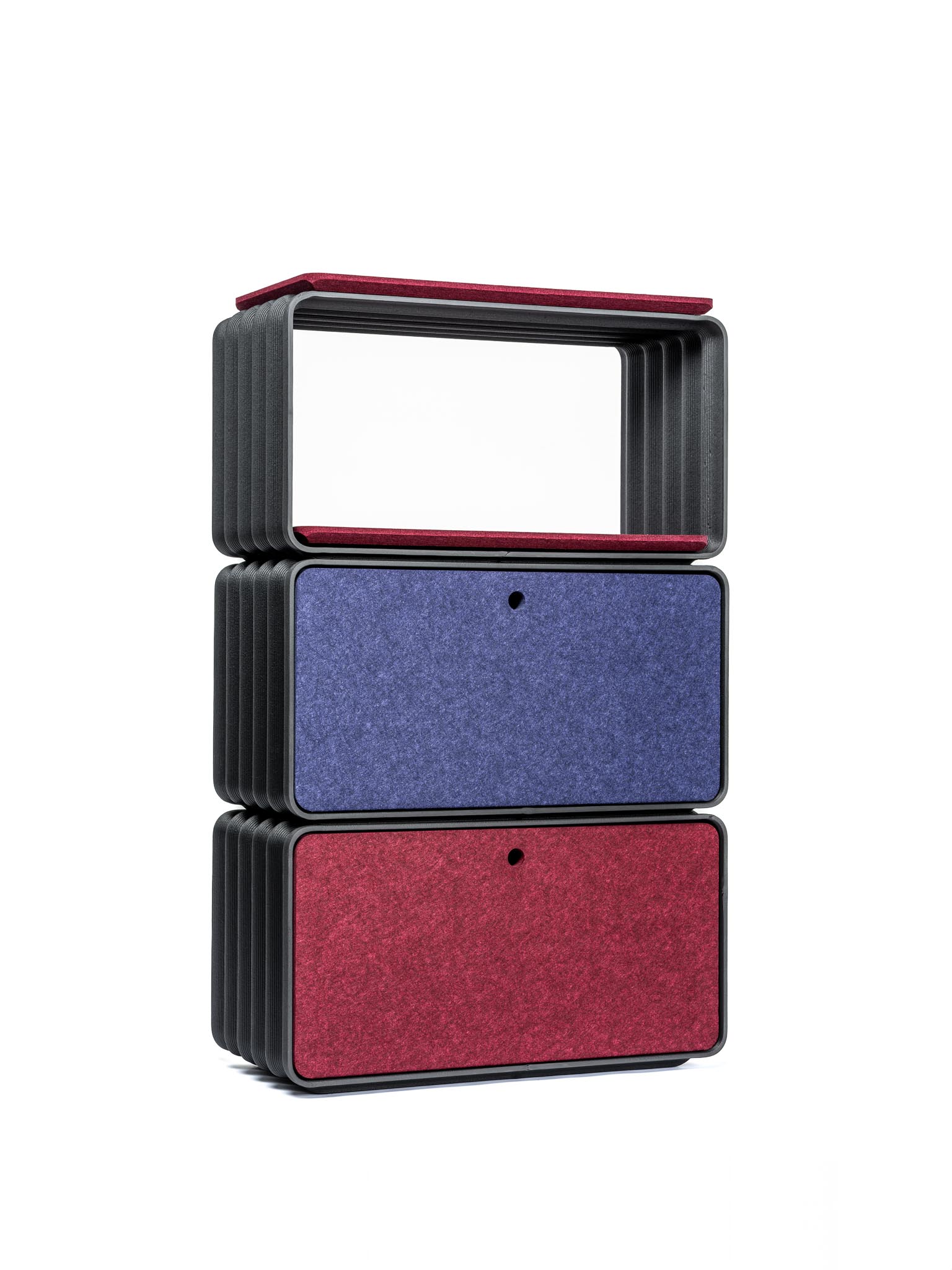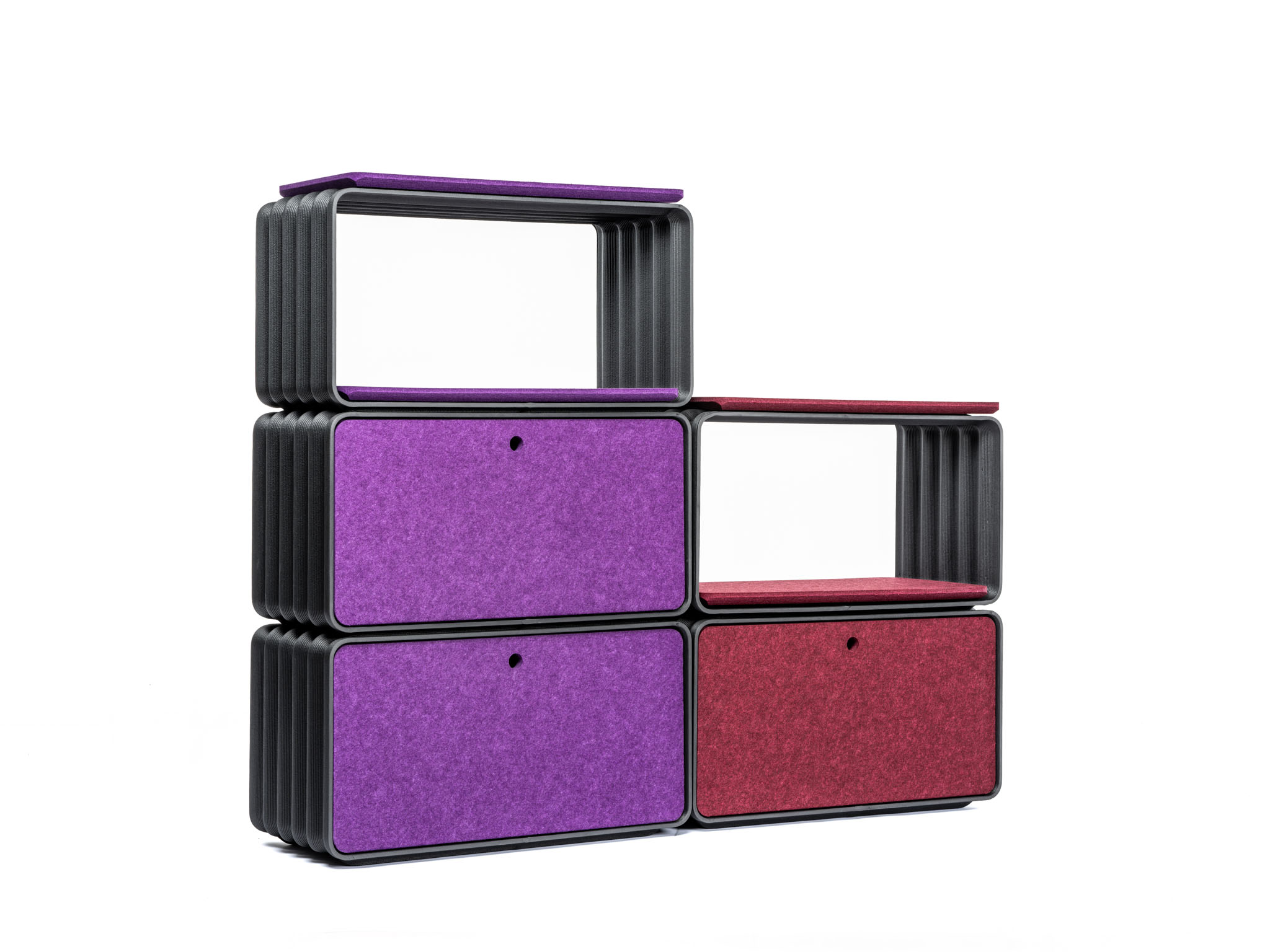 Geschlossenes Regal mit Filztüren/-wänden für zusätzlichen Schutz und Stauraum.
