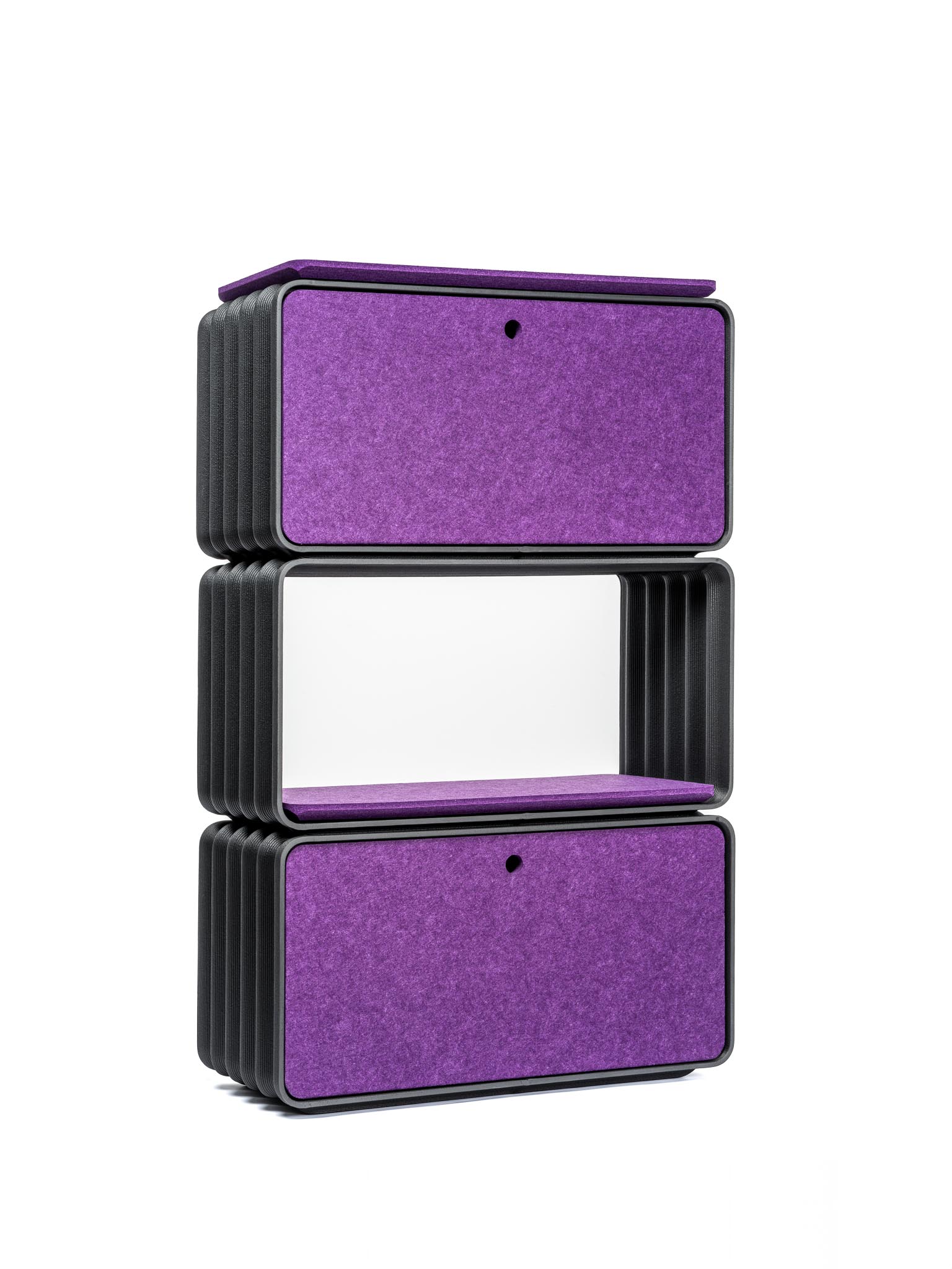 Offenes Regal mit hochwertigem Filzinlay für eine ebene Abstellfläche.