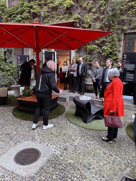 Am zweiten Tag durften wir Bundesrätin Elisabeth Baume-Schneider, Botschafter Roberto Balzaretti und Konsul Lazzarotto bei uns begrüssen. Der Austausch über Design, Innovation und Nachhaltigkeit war inspirierend – und eine besondere Ehre für uns.